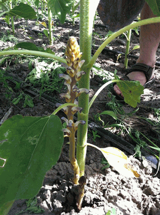 圖5:這是對照田單株食葵列當發(fā)生的情況.. 圖6:對照田里的葵花列當