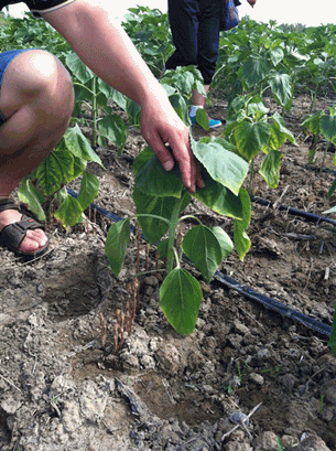 圖1: 食葵列當寄生在向日葵植株上 圖2 :仔細觀察產品對列當的防治效果
