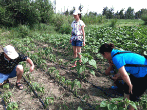 圖9:三位專家在地里察看 圖10:科技特派員認真聽取公司劉總講解列當的危害和防治措施