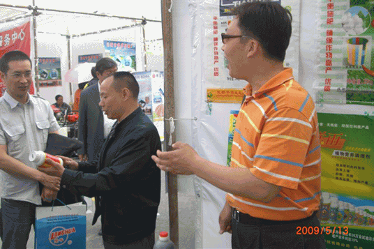 2009年,以土壤改良劑為代表的公司產(chǎn)品參展新疆自治區(qū)農(nóng)博會 2014/1/16 華宏生物 2009年,以土壤改良劑為代表的公司產(chǎn)品 參展新疆自治區(qū)農(nóng)博會 圖片編輯:陽光 圖1:公司負責(zé)人在向來訪者介紹產(chǎn)品 圖2 :公司負責(zé)人在回答來訪者的提問 圖3:公司負責(zé)人在向來訪者推薦產(chǎn)品