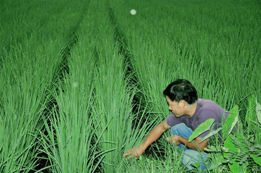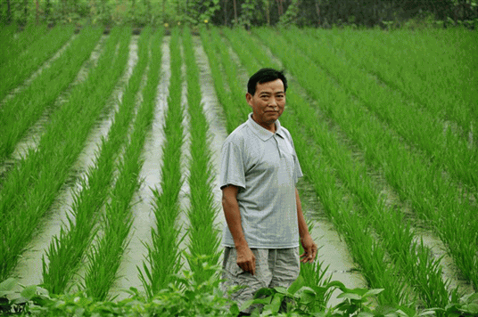 圖2:農(nóng)戶看見自己家的秧苗長得如此茂盛,心里樂滋滋的