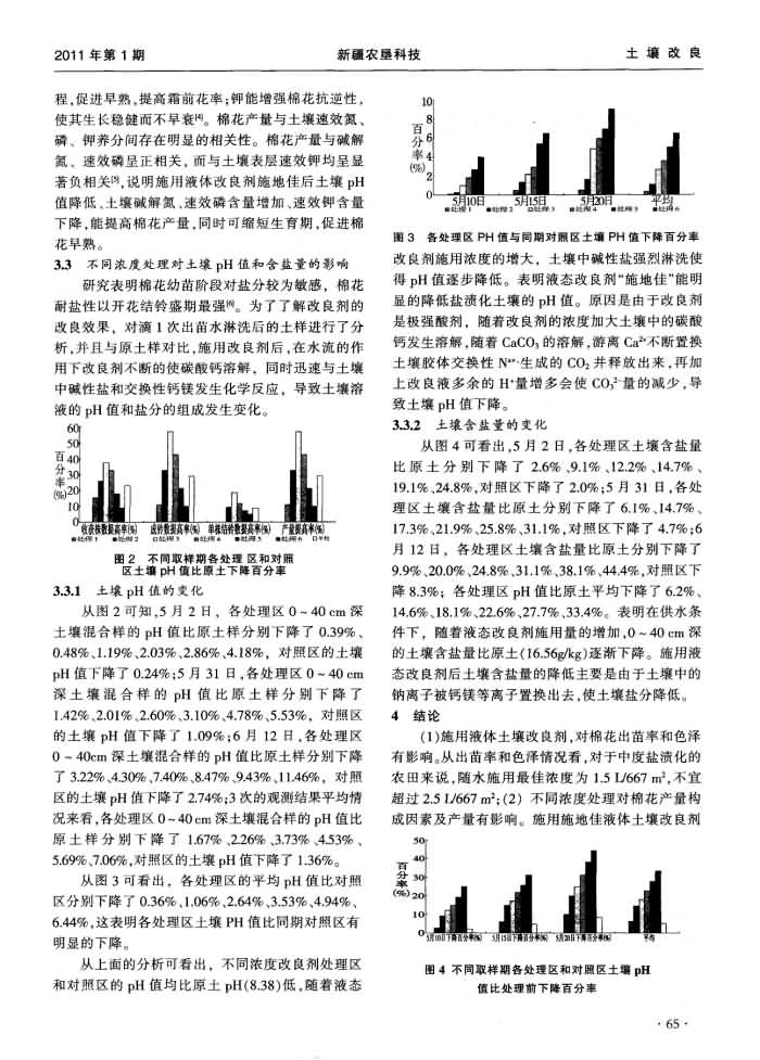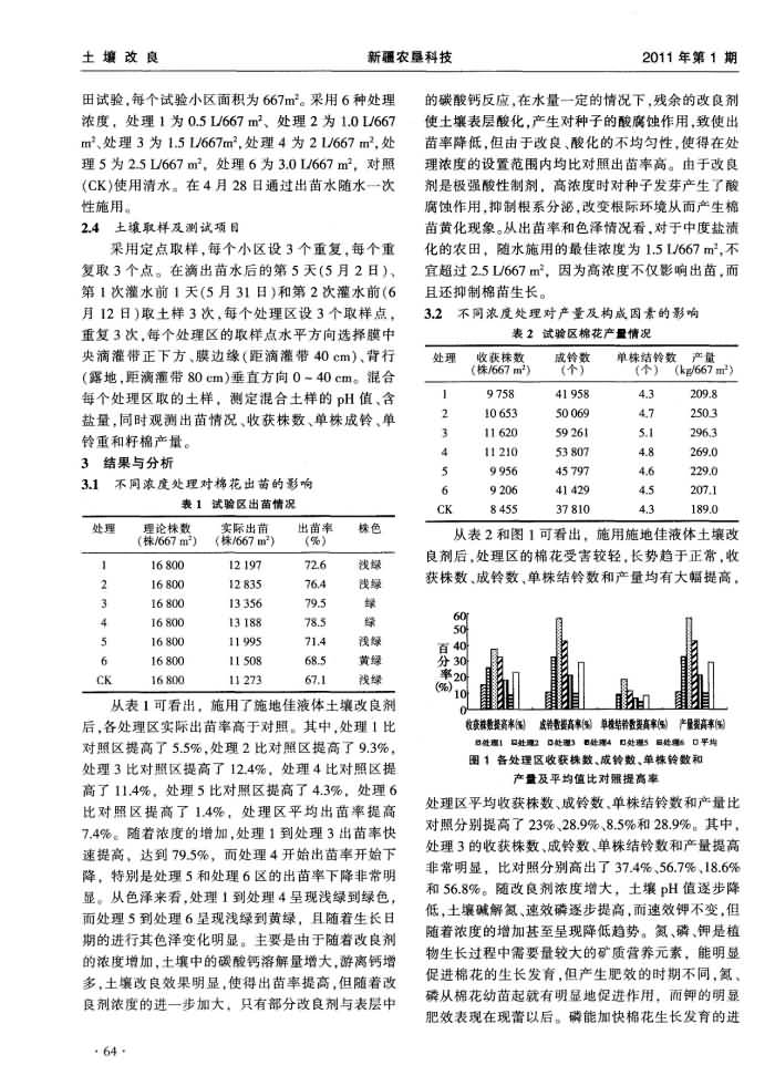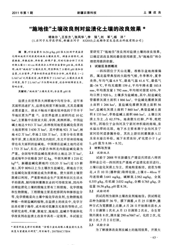 《新疆農(nóng)墾科技》2011年第1期 “施地佳”土壤調(diào)理劑對(duì)鹽漬化土壤的改良效果