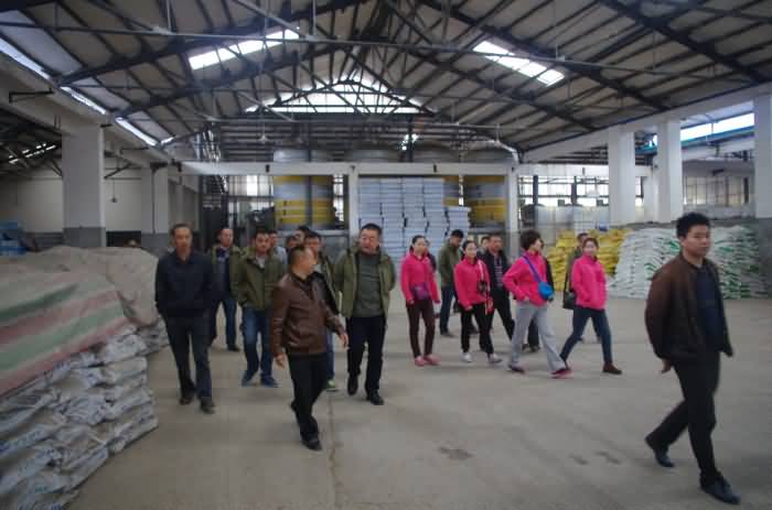 2014年10月31—11月1日,新疆偉農(nóng)科技發(fā)展有限公司馬董事長和孫總經(jīng)理,攜公司員工37人,專程來到成都華宏生態(tài)農(nóng)業(yè)科技有限公司參觀考察,成都華宏公司總經(jīng)理李智強、副總經(jīng)理陸勇、廣漢分公司總經(jīng)理姚虞和各部門負責人熱情地接待了遠方來的貴賓。在李總等的引領下,他們分別參觀了華宏公司大量元素水溶肥料生產(chǎn)線、氨基酸液肥、“施地佳”土壤調理劑生產(chǎn)線和微生物發(fā)酵車間。偉農(nóng)公司有員工風趣地說:很榮幸來到“施地佳”土壤調理劑的娘家參觀考察。是的,這里就是“施地佳”土壤調理劑的誕生地,成都華宏生態(tài)農(nóng)業(yè)科技有限公司經(jīng)過近10年的研發(fā)、試驗和不斷改進,“施地佳”土壤調理劑產(chǎn)品已趨于成熟,它將在全國的土壤改良行業(yè)發(fā)揮它獨特的作用。