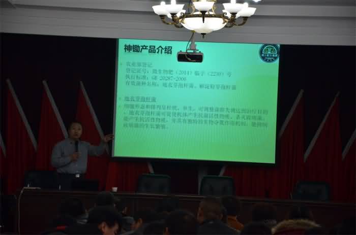 圖1:2014年12.14日公司與沙灣縣農(nóng)業(yè)技術(shù)推廣中心聯(lián)合科技之冬講座,總農(nóng)藝師劉軍和沙灣縣農(nóng)機(jī)推廣中心總農(nóng)藝師杜友萍組織合作社技術(shù)員、種植大戶技術(shù)員總結(jié)2014年的工作,計(jì)劃2015年的工作流程,講解新技術(shù)新產(chǎn)品的應(yīng)用