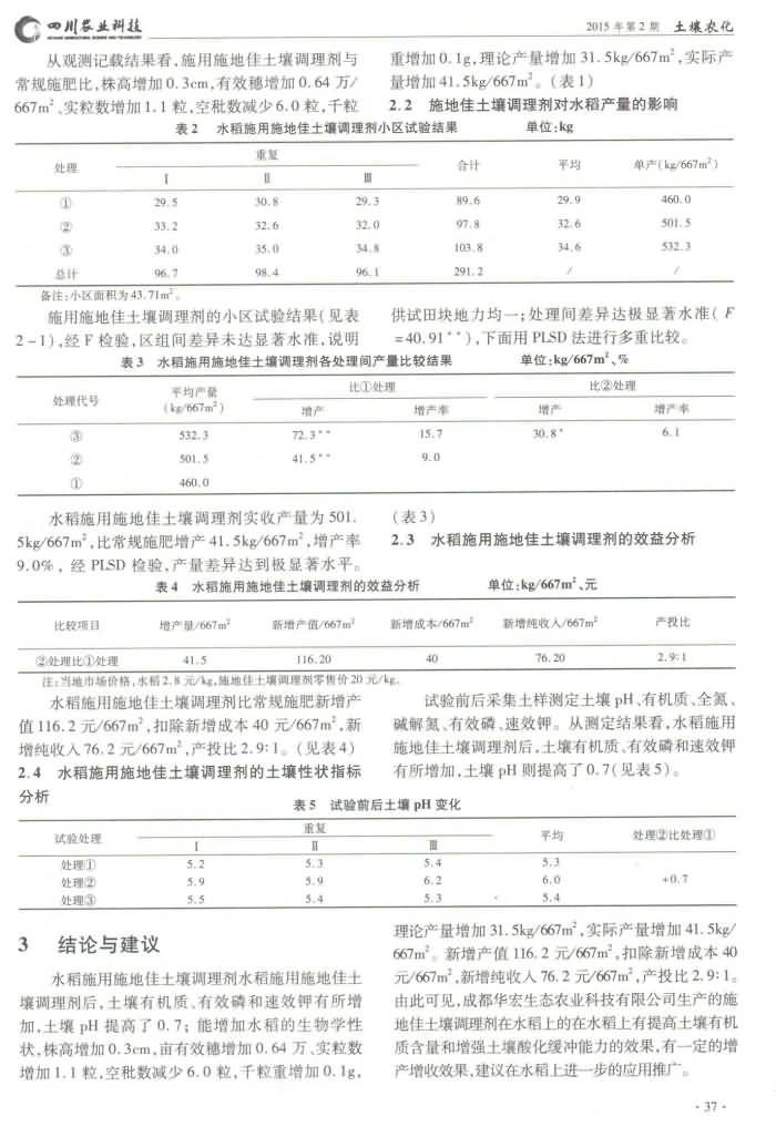 《四川農(nóng)業(yè)科技》2015年第2期 浦江縣“施地佳”土壤調理劑在酸性土壤田間改良研究
