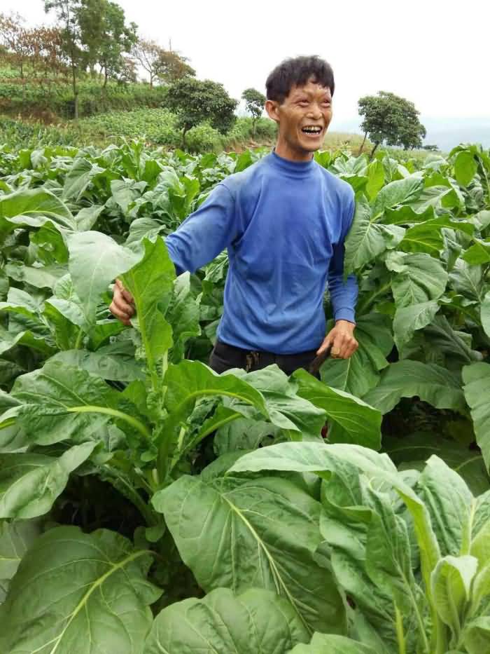圖5:貴州道真縣河口鎮(zhèn)張倫飛看著自己今年50畝煙葉地?zé)熑~長得這么好,笑得合不攏嘴了