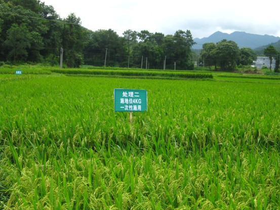 2015年4月江西省興國縣土壤肥料站安排在水稻早晚兩季試驗(yàn),此次試驗(yàn)采取對(duì)比定位試驗(yàn)方法,供試土壤為潴育型潮沙泥土,PH值為4.9,酸化程度已經(jīng)較為嚴(yán)重。試驗(yàn)設(shè)置了3個(gè)處理,大區(qū)采用隨機(jī)排列,處理一為對(duì)照試驗(yàn)田,農(nóng)民采用習(xí)慣施肥方式,不使用土壤調(diào)理劑。