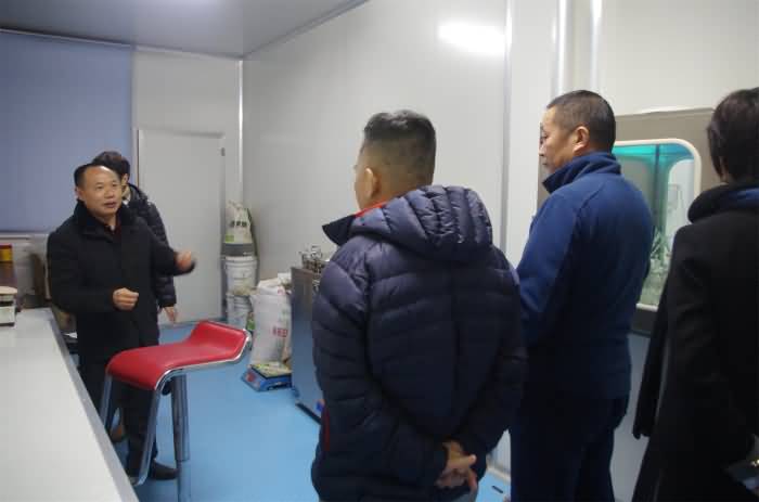 圖為劉董一行參觀公司微生物監(jiān)測室