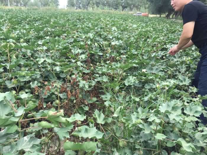 新疆生產(chǎn)建設(shè)兵團第八師142團16連棉花種植三十多年,棉花枯萎、黃萎病嚴(yán)重2010年棄耕,我們與種植大戶商量自2011年開始,采用兵團第八師142團16連棉花種植三十多年,棉花枯萎、黃萎病嚴(yán)重2010年棄耕,我們與種植大戶商量自2011年開始,采用水肥一體化改良土壤,生物防病,當(dāng)年見效棉花防病效果與對照田達到70%,平均畝產(chǎn)達300公斤,我們連續(xù)實施至今第六年,今天到地里察看整個1000畝未發(fā)現(xiàn)病株,預(yù)測平均畝產(chǎn)達400公斤。隔壁田塊發(fā)病率達40%,預(yù)測產(chǎn)量250公斤。事實證明,土壤改良棉花頑癥治療不是難題!改良土壤,生物防病,當(dāng)年見效棉花防病效果與對照田達到70%,平均畝產(chǎn)達300公斤,我們連續(xù)實施至今第六年,今天到地里察看整個1000畝未發(fā)現(xiàn)病株,預(yù)測平均畝產(chǎn)達400公斤。隔壁田塊發(fā)病率達40%,預(yù)測產(chǎn)量250公斤。事實證明,土壤改良棉花頑癥治療不是難題!