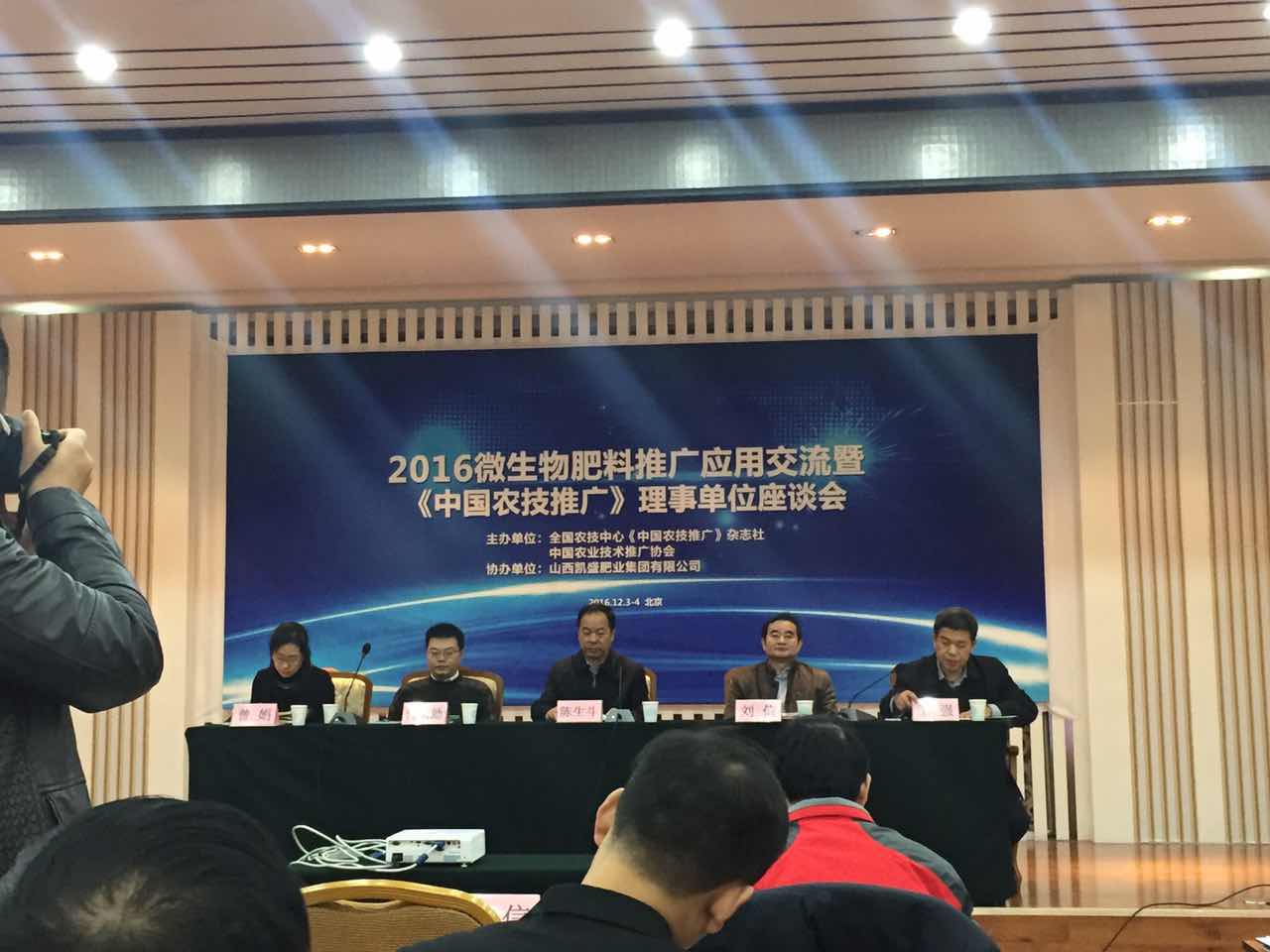 2016年12月3—4日,由全國農(nóng)技推廣中心《中國農(nóng)技推廣》雜志社、中國農(nóng)業(yè)技術(shù)推廣協(xié)會主辦的“2016微生物肥料推廣應(yīng)用交流暨《中國農(nóng)技推廣》理事單位座談會在北京召開,來自全國200個專家、學(xué)者、涉農(nóng)科技企業(yè)代表和各理事單位代表參加了座談會,成都華宏生物科技有限公司楊洋副總經(jīng)理蒞臨座談會。