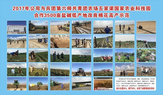 據(jù)介紹,五家渠國(guó)家農(nóng)業(yè)科技園創(chuàng)立于2012年4月,是由國(guó)家科技部批準(zhǔn)建設(shè)的現(xiàn)代化農(nóng)業(yè)示范園區(qū)。園區(qū)核心區(qū)位于新疆生產(chǎn)建設(shè)兵團(tuán)第六師共青團(tuán)農(nóng)場(chǎng),由現(xiàn)代農(nóng)業(yè)節(jié)水技術(shù)示范園、設(shè)施農(nóng)業(yè)示范園、現(xiàn)代畜牧產(chǎn)業(yè)園、特色林果產(chǎn)業(yè)園、農(nóng)產(chǎn)品加工產(chǎn)業(yè)園及信息技術(shù)中心、科技研發(fā)中心、管理服務(wù)中心等組成,占地面積達(dá)7萬(wàn)畝地。其中3500畝的棉花種植區(qū),一直以來(lái)是兵團(tuán)和農(nóng)場(chǎng)重點(diǎn)攻關(guān)增產(chǎn)的項(xiàng)目,卻受制于當(dāng)?shù)佧}堿化的惡劣環(huán)境,始終處于低產(chǎn)歉收的狀態(tài)。