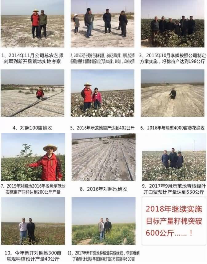 有機生物改良新開荒鹽堿地,第一年種植棉花畝產(chǎn)200公斤,第二年400公斤、第三年棉花畝產(chǎn)達500公斤,實現(xiàn)不花錢成功改良鹽堿地。
