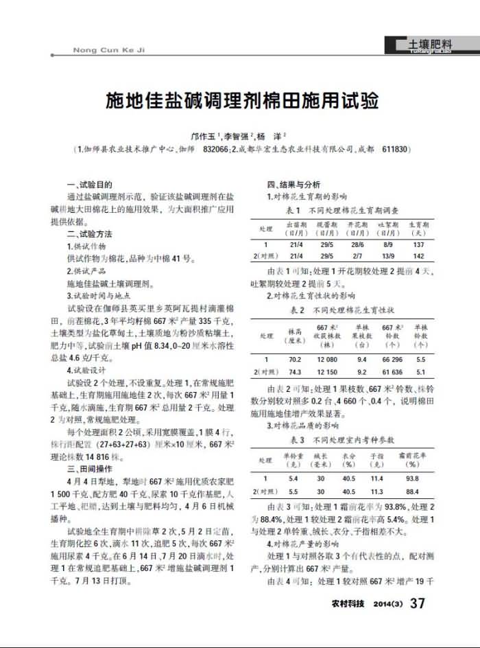 施地佳鹽堿調(diào)理劑棉田施用試驗