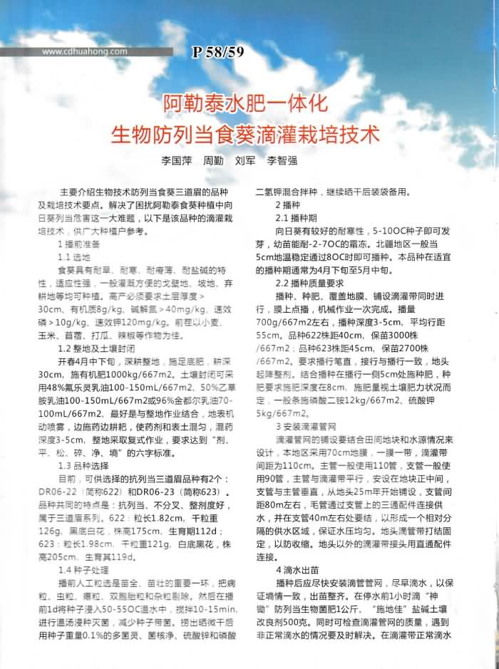 阿勒泰水肥一體化生物防列當(dāng)食葵滴灌栽培技術(shù)