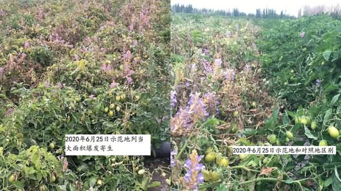 新疆焉耆縣包爾海鄉(xiāng)低產田鹽堿地改良、生物有機防治番茄列當 700 畝示范田成果匯報